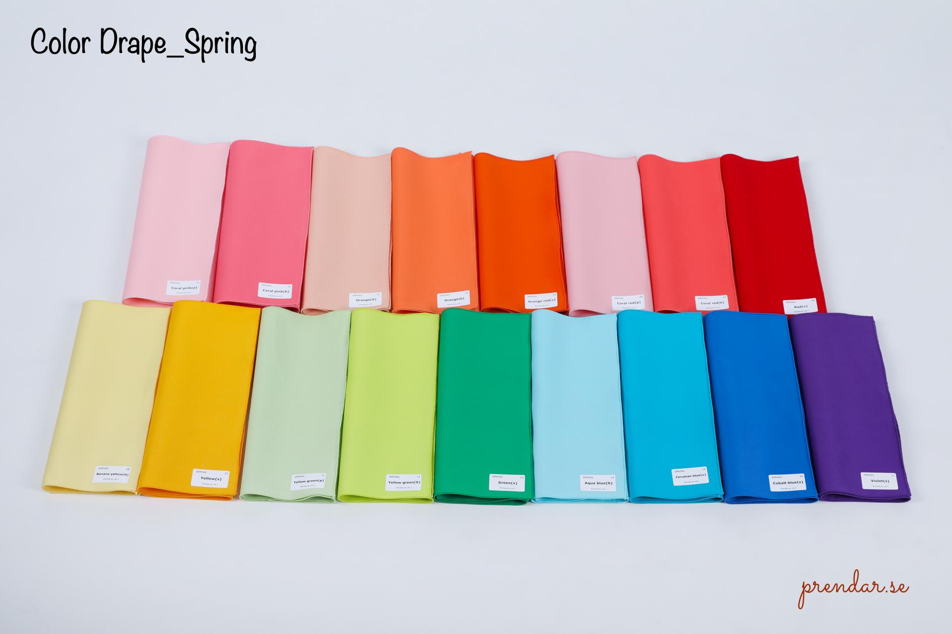 이 드레이프 세트는 퍼스널컬러 진단에서 가장 많이 활용되는 PCCS 색 체계를 기반으로 연구하여 제작되었습니다. 색상 하나하나 신중하게 선택되어, 퍼스널컬러 세부 타입에 맞춘 80 가지 컬러로 구성되었습니다.